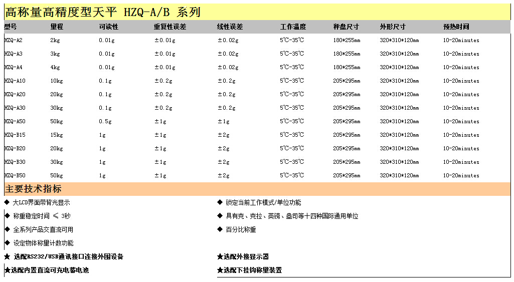 高称量高精度型天平 HZQ-A/B 系列
